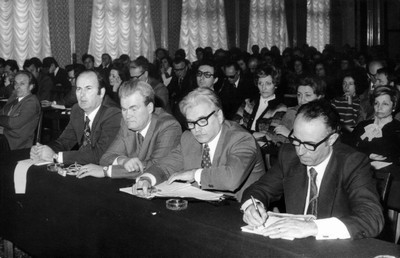Znanstveni skup defektologa, u prvom redu s lijeva sjede Gojko Zovko, Franjo Tonković i Vojislav Kovačević.