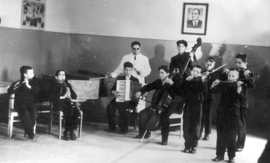 Učenici na satu glazbenog odgoja s profesorom. Škola Liceul Special pentru Deficienţi de Vedere Cluj-Napoca osnovana je kao „Institut za slijepe“. U početku pohađalo ju je svega 10 učenika. U razdoblju između dva svjetska rata sagrađene su nove školske zgrade na Calea Dorobanţilor br. 31 u kojoj se škola i danas nalazi. Za vrijeme drugog svjetskog rata škola je služila kao centar za reedukaciju vojnika koji su oslijepjeli na frontu. Nakon rata slijedi razvoj škole te je osnovana je vrtićka skupina, odjel za gluho slijepe i odjel za slabovidne.